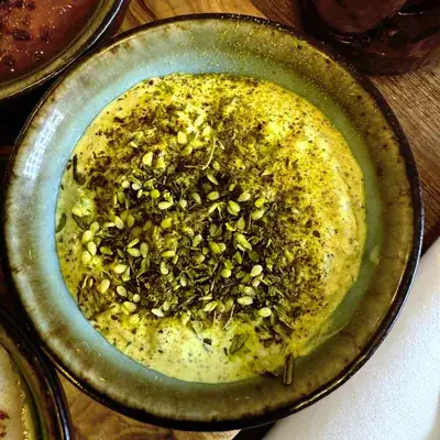 • Yaourt zaatar Grec  ( yaourt, ail, jus de citron, zaatar),