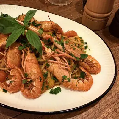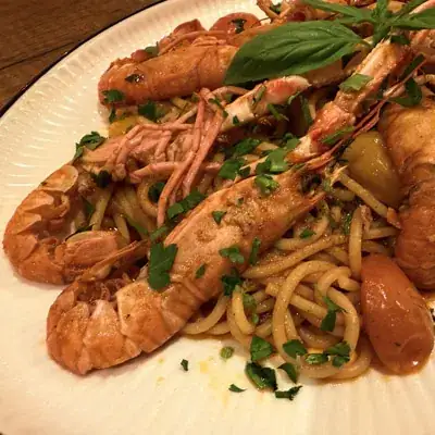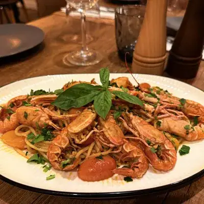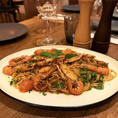 Spaghetti al dente sublimés par une sauce légère et parfumée, mijotée avec des langoustines fraîches et de l’ail doré. Les tomates cerises rôties apportent une douce acidité, tandis que le persil frais vient réveiller l’ensemble avec des notes vives et ensoleillées. Un plat élégant aux saveurs marines, simple et raffiné, inspiré des côtes méditerranéennes.